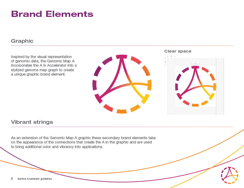 The Illumina parent brand underwent a brand refresh leaving the accelerator tool kit out of date. In addtion, growth in the accelerator program expanded into partnerships where Illumina needed to reflect its position as a collaborator among other well known industry participants and programs. The challenge is to create a scalable brand system that maintains its connection to the Illumina master brand.